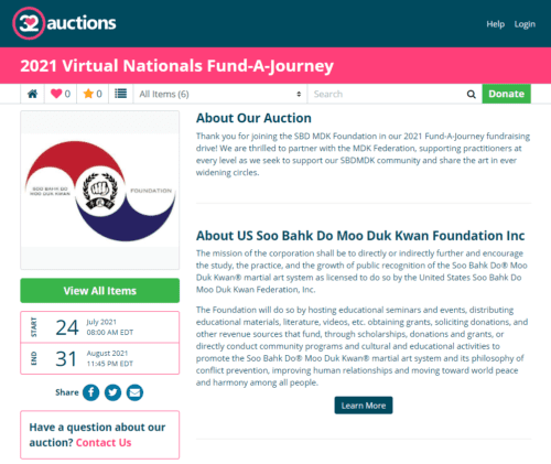 Go Bid Now The United States Soo Bahk Do Moo Duk Kwan Federation® has entered into an agreement with the United States Soo Bahk Do Moo Duk Kwan FOUNDATION to manage and the Silent Auction for the Federation in concert with the National Festival. The FOUNDATION sets a contribution value acquisition goal for each Silent…
