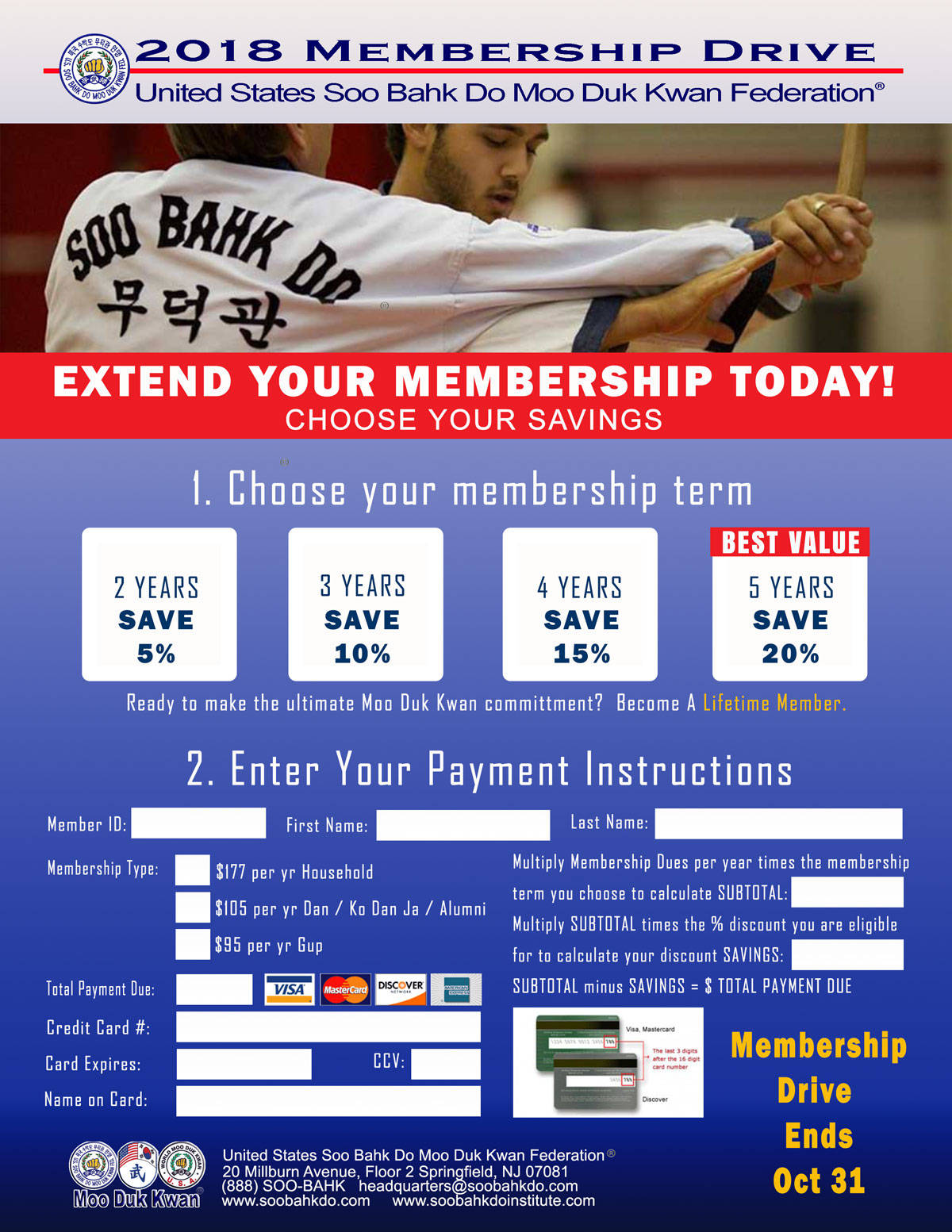 During the 2018 Membership Drive, multi-year and Lifetime Memberships provide more value than ever for members who have already made a long-term commitment to the Moo Duk Kwan® and Soo Bahk Do® in their hearts.