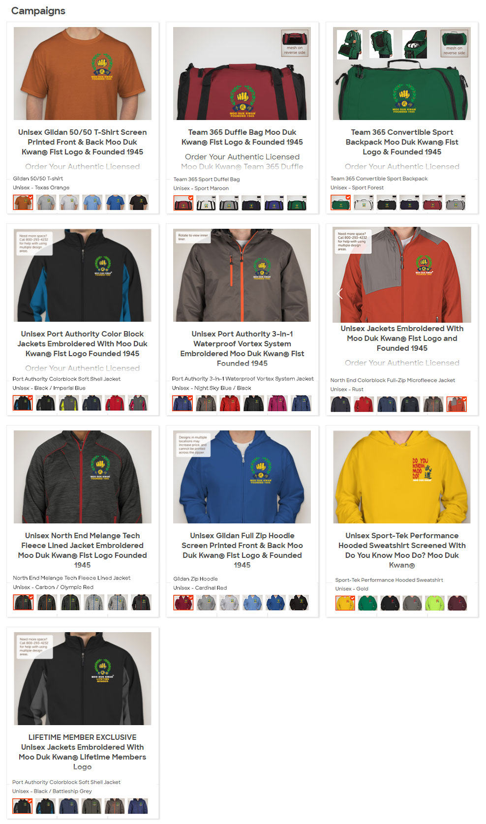 Shop For Official Moo Duk Kwan® Apparel During This Time Limited Opportunity To Order a Variety of Name Brand Products, Styles and Colors starting at only $25